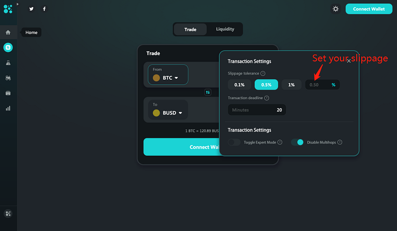 Due to the poor liquidity of tokens or the need to set a fixed slippage value for trading, it is necessary to set a trading slippage