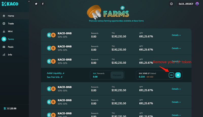 When you don’t want to pledge, click on the symbol to select the number of LP tokens to be withdrawn