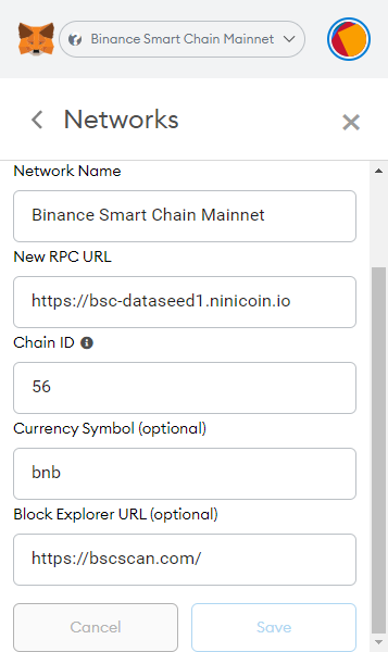 Blockchain Browser URL (optional): https://bscscan.com